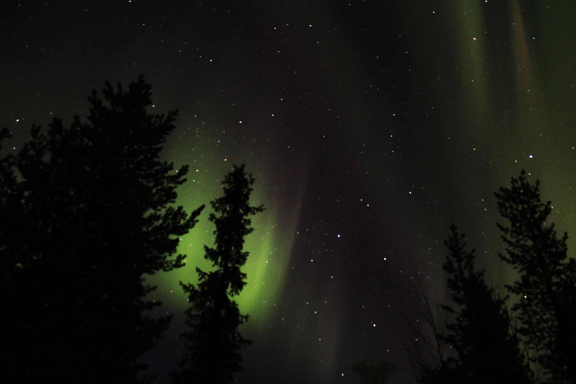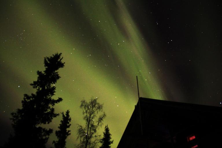 Eigentlich wollen wir uns ins Bett legen, wäre da nicht wieder das Schauspiel des Nordlichtes am Himmel.
