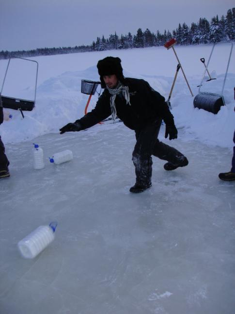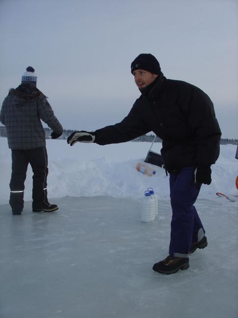 Erstaunlich ist der Exploit von Dänu air-craft stonecrasher Frick, ist es im sehr schnell gelungen sich an das extreme Klima und die Curlingbahn von Salankijärvi anzupassen. Seine Steine werden noch des öfteren zum Problem der anderen Teilnehmer. |