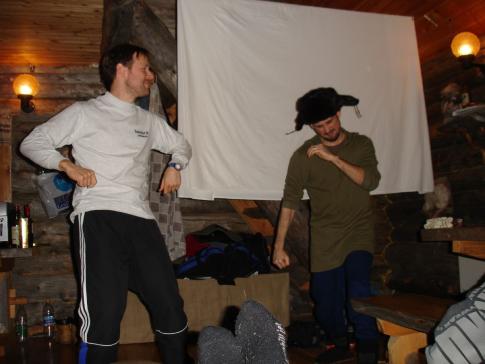 Um die Wartezeiten bis zum beginn der Siegereehrung zu verkürzen würde uns noch ein Curler-Shoot-Caffe serviert. "OHA" Nach längerem warten erreichte uns die Nachricht, die Damen von der Siegereehrung mit den Eisblumen hätten sich irgendwo in Lappland verfahren. Das brachte uns dann aber nicht vom Plan ab unsere eigene Siegesfeier abzuhalten. |